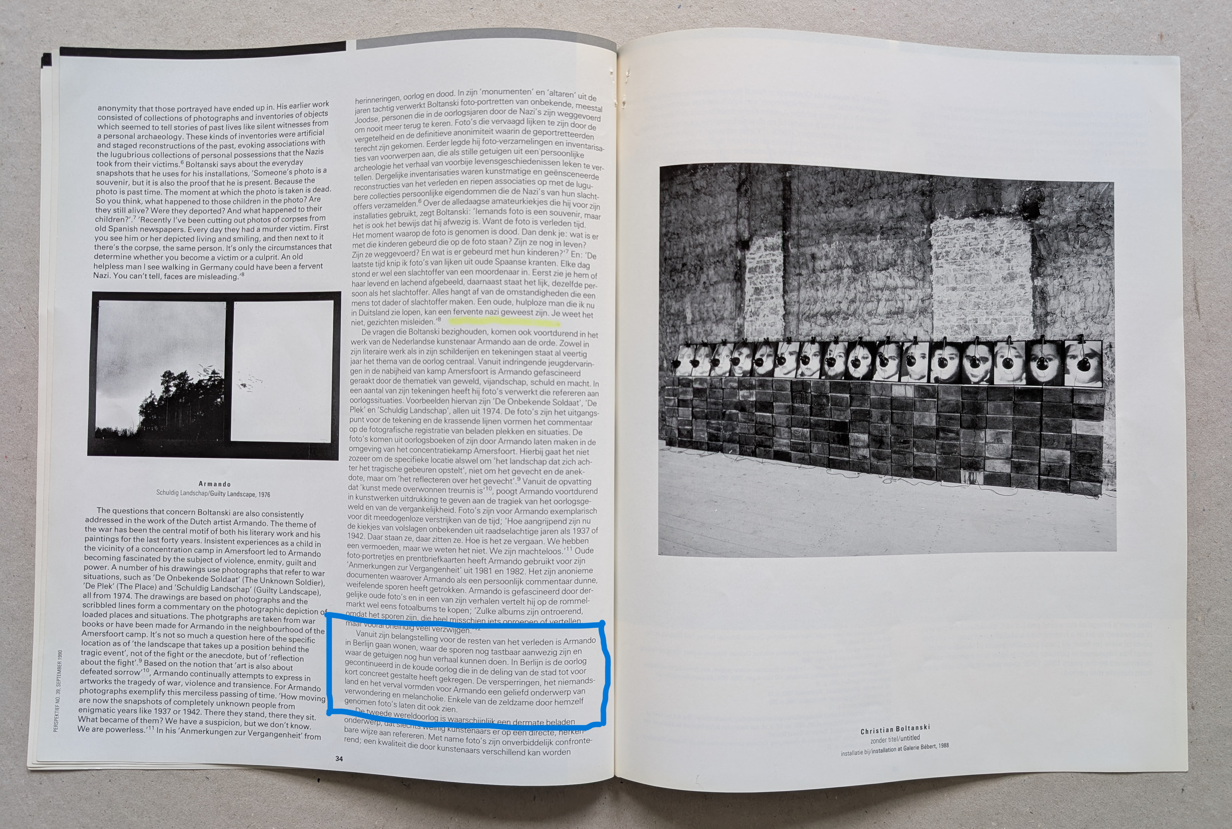 Leo Delfgaauw, ‘Pro Memorie. Fotografie als document van de herinnering in het werk van naoorlogse fotografen en beeldende kunstenaars’, Perspectief, nr. 39, september 1990, pp. 28-36, afgebeeld op p. 32