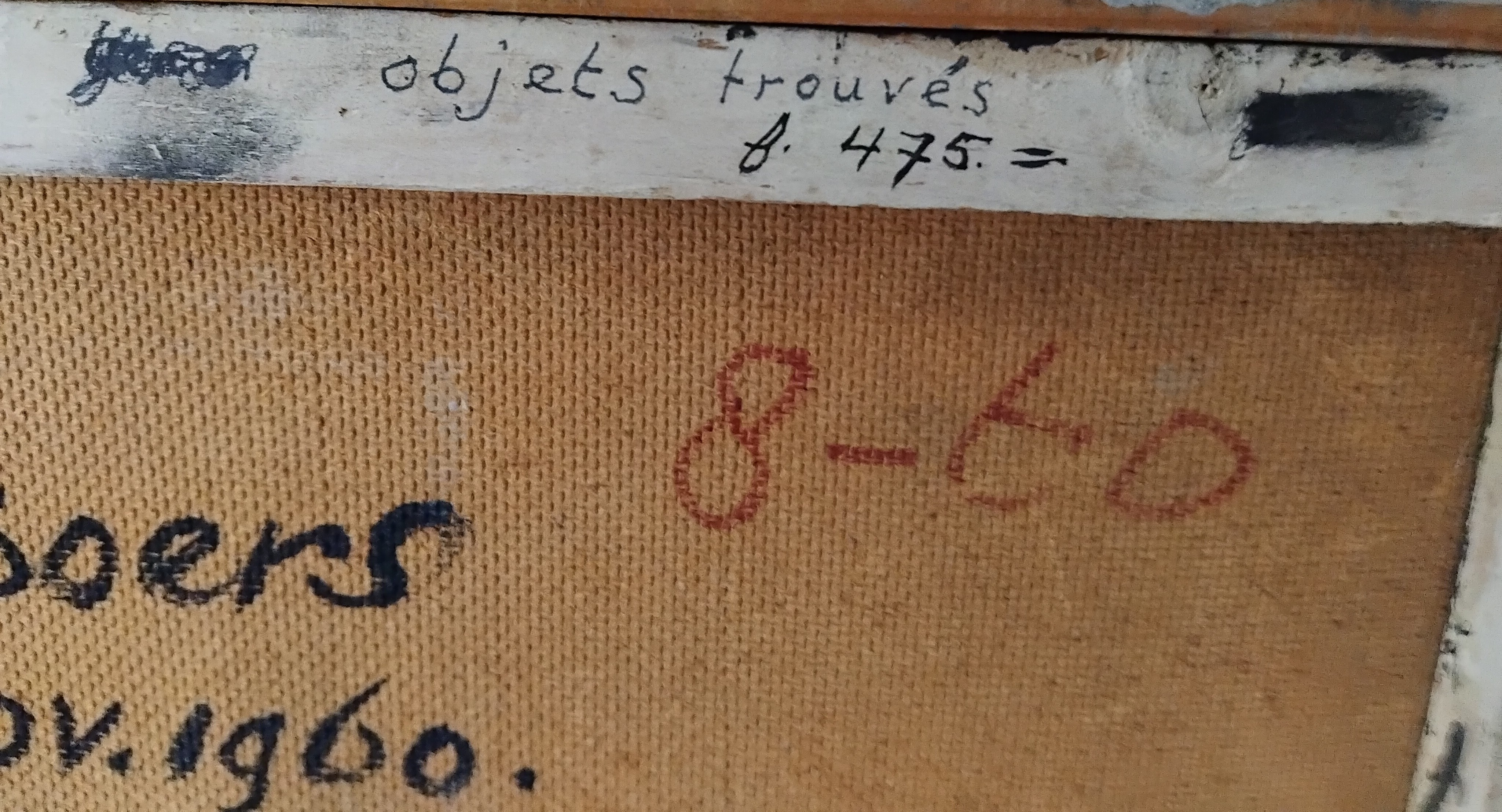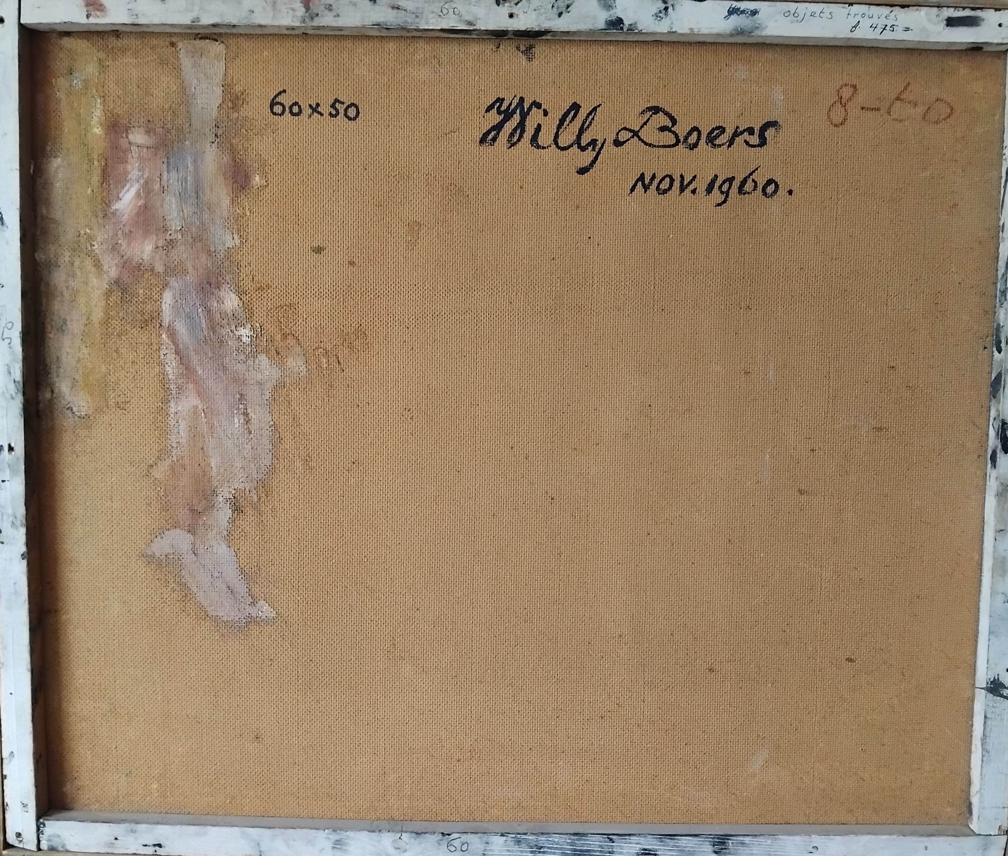 Rechtsonder gesigneerd en gedateerd 1960. Nogmaals op de achterzijde gesigneerd, getiteld en gedateerd nov. 1960.