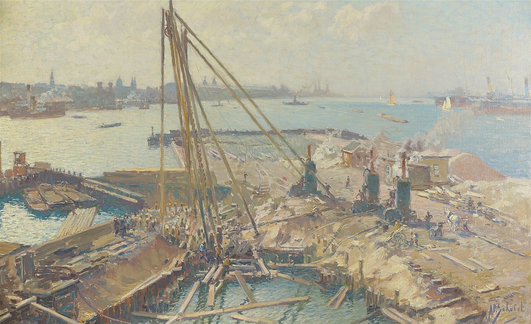 Gezicht op één bouwput aan het IJ te Amsterdam