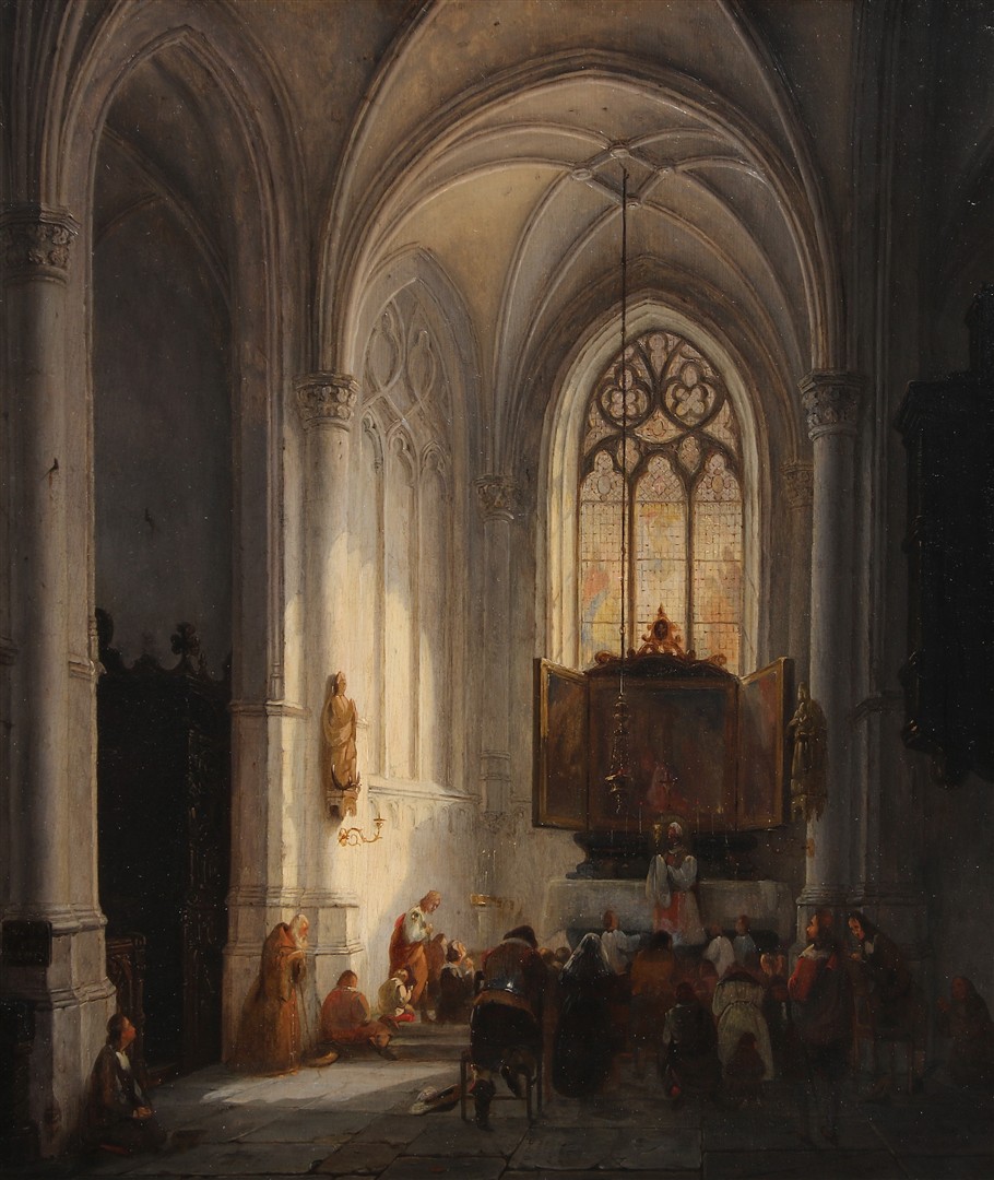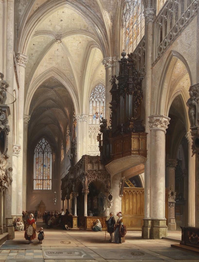 Interieur van de Sint-Gummaruskerk in Lier (1850)
