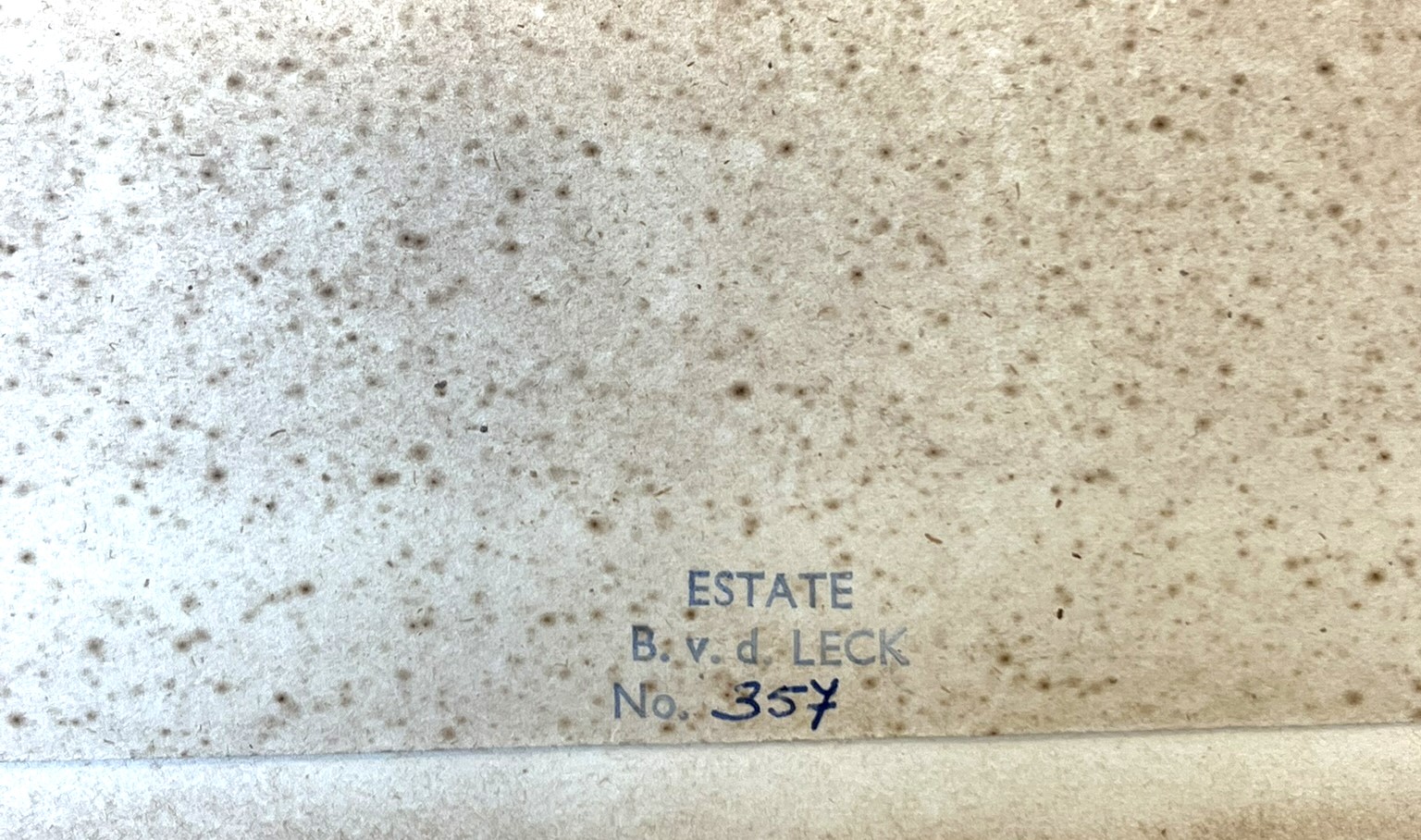 With estate stamp and numbered 'Estate/B.v.d. Leck/No. 357' (on the reverse).