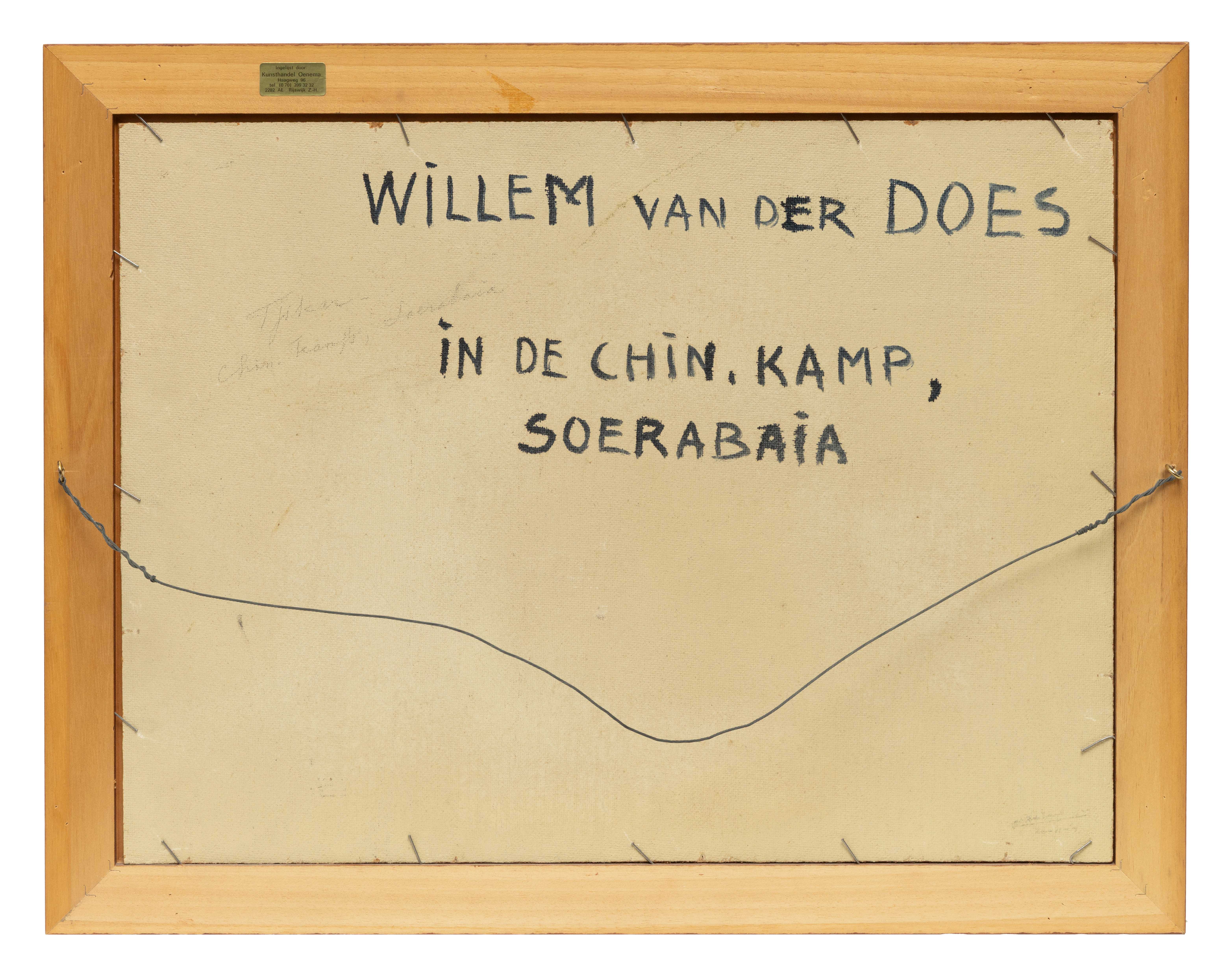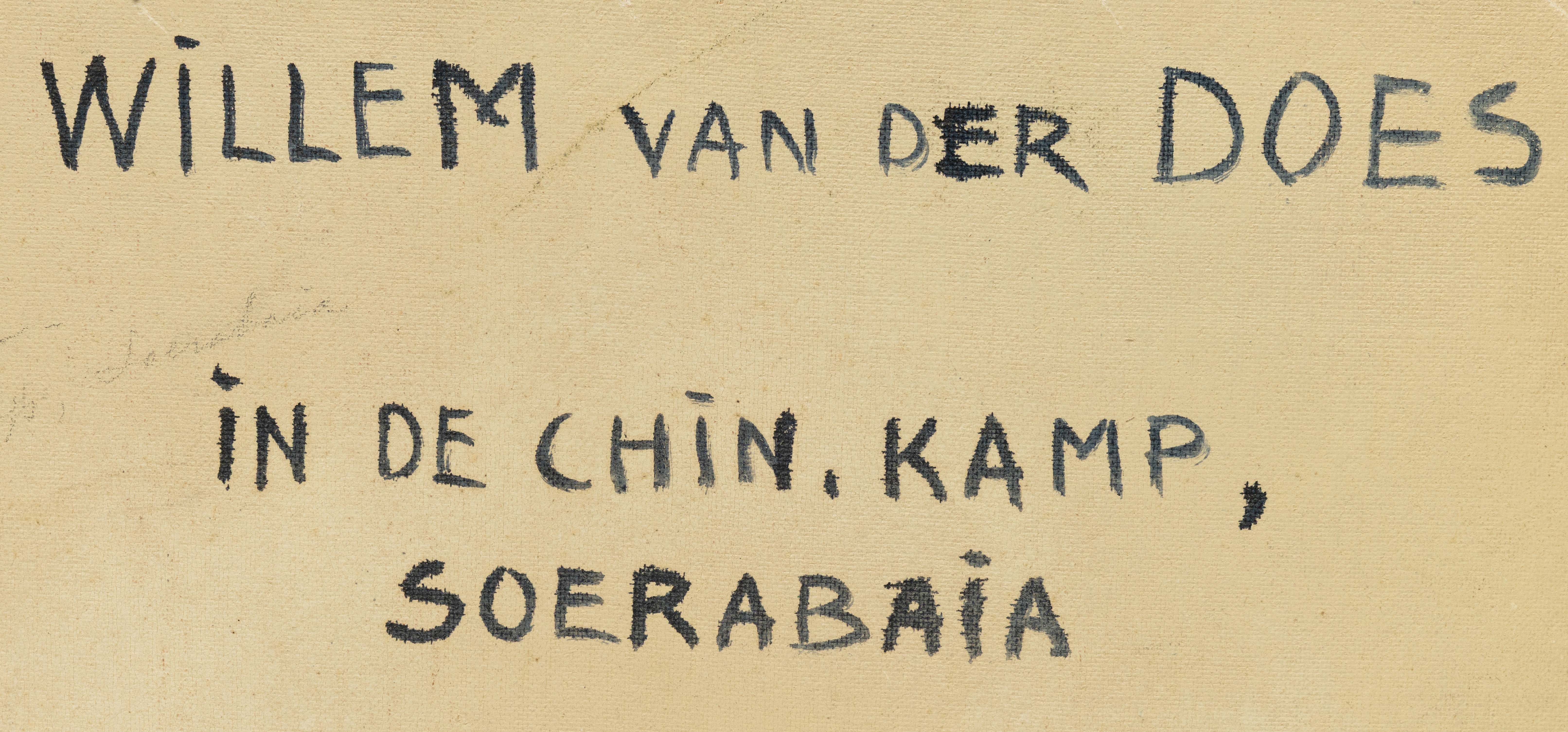 Signed 'W. v.d. Does-' (lower right); with artist's name and annotation 'In de Chin. Kamp,/Soerabaia' (on the reverse).