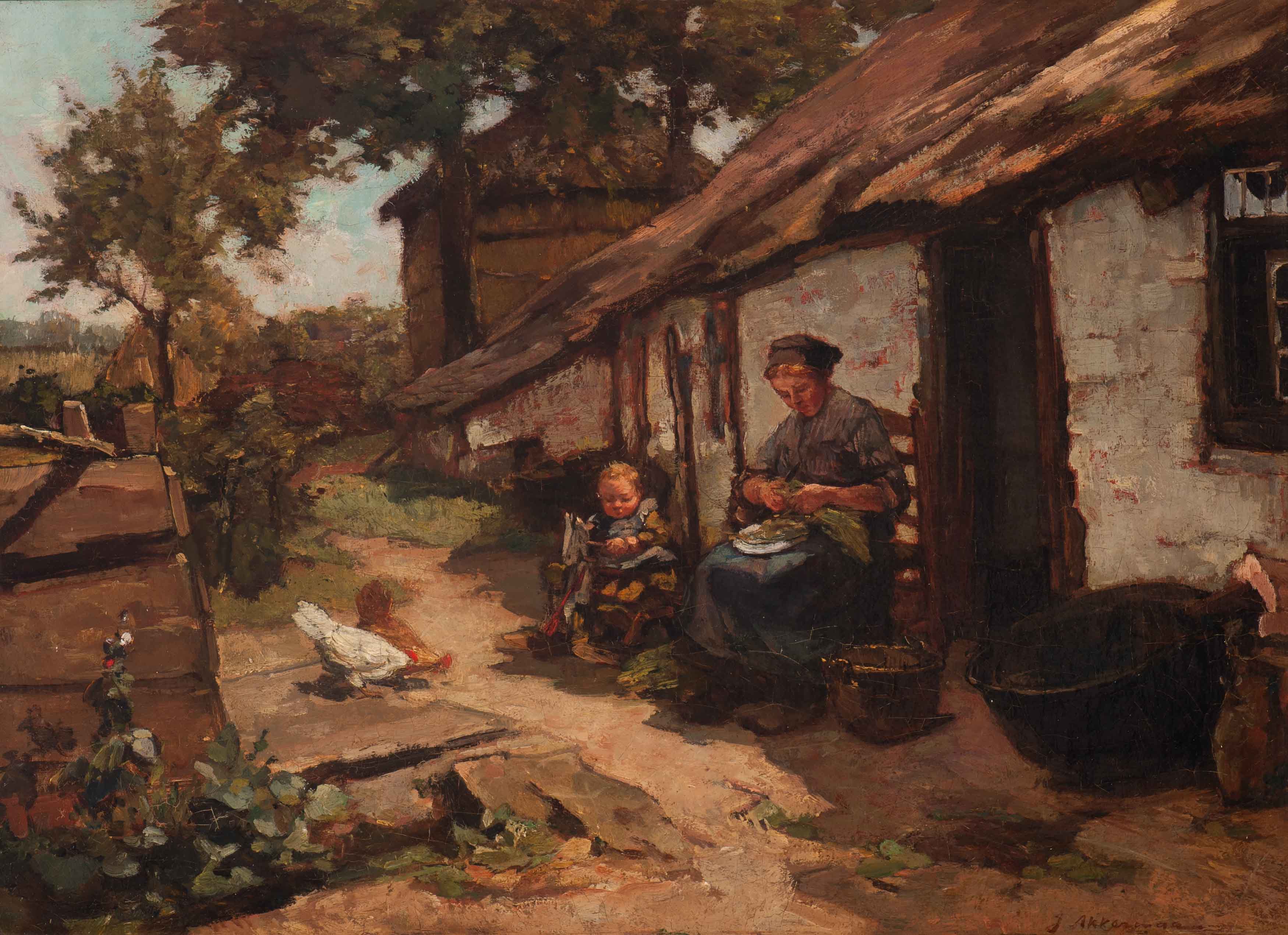 Johannes Evert Akkeringa maakte naam met zijn blijmoedige Hollandse taferelen. Hij verbeeldde vredig werkende vrouwen en spelende kinderen in huiselijke sfeer, Akkeringa wordt dan ook de ‘schilder van het onbezorgde leven’ genoemd. Werk van de kunstenaar bevindt zich onder andere in de collectie van het Frans Halsmuseum in Haarlem, het Kröller-Müller Museum in Otterlo en het Gemeentemuseum Den Haag.