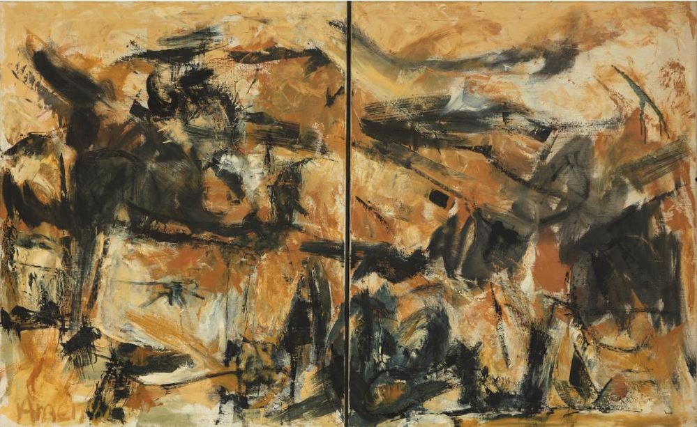 In 1961 vertrok hij voor twee jaar naar de Verenigde Staten. Hij maakte kennis met Amerikaanse kunstenaars als Andy Warhol en Robert Rauschenberg, pioniers in de pop-art. Alledaagse gebruiksvoorwerpen uit de consumptiemaatschappij werden door de kunstenaars in hun werk verwerkt. Van Amen werd hierdoor geïnspireerd en maakte een aantal schilderen waarin hij aantal in Nederland bekende merknamen verwerkte.