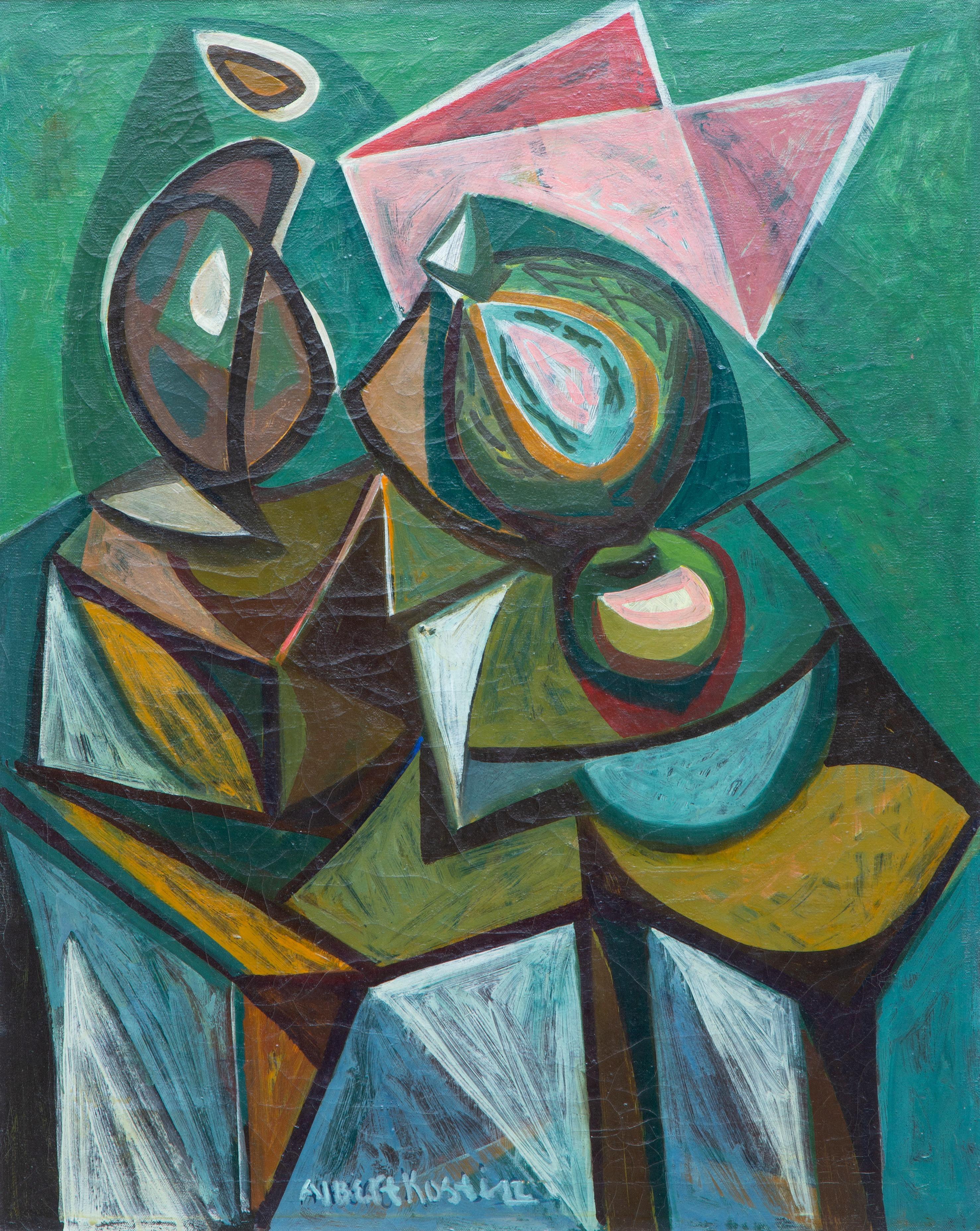 Albert Kostin was an American painter, born in Russia. He started his career around 1912 in Paris, where he specialized in cubism. Later, in the US, he became a respected member of the New York School of abstract-expressionism. Albert Kostin was directly influenced by Pablo Picasso and worked with Jackson Pollock.