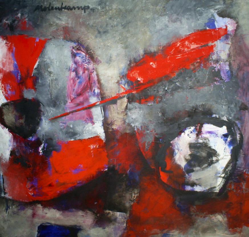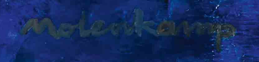 Het pallet van Nico Molenkamps schilderijen wordt vaak gekenmerkt door opvallende, tonale kleurstellingen. Op vele doeken ziet men afgewogen schakeringen, onverwachte accenten en tinten én gedurfde contrasten. De uitgebeelde thema's zoals het circus, de kermis, het theater, lijken veelal bewust ‘vlak' te zijn geschilderd. Bovendien zijn ze dikwijls in een ‘ondiepe' ruimte geplaatst. De vormentaal van zijn dier- en mensfiguren heeft als gevolg van deze aanpak bij tijd en wijle een ‘sculpturale' uitstraling. In Molenkamps werk lijkt het bovendien zelden om de representatie van bestaande personages te gaan. Hij kadert zijn onderwerpen op speciale, haast filmische wijze. Alle figuren zijn deels ‘afgesneden'. Het is alsof hij, als een cameraman, iedere keer opnieuw inzoomt op zijn onderwerp en het tegelijkertijd uitvergroot. De monumentaliteit van Molenkamps werk draagt er mede toe bij dat de kijkers het gevoel krijgen dat zij op de huid van het onderwerp zitten.