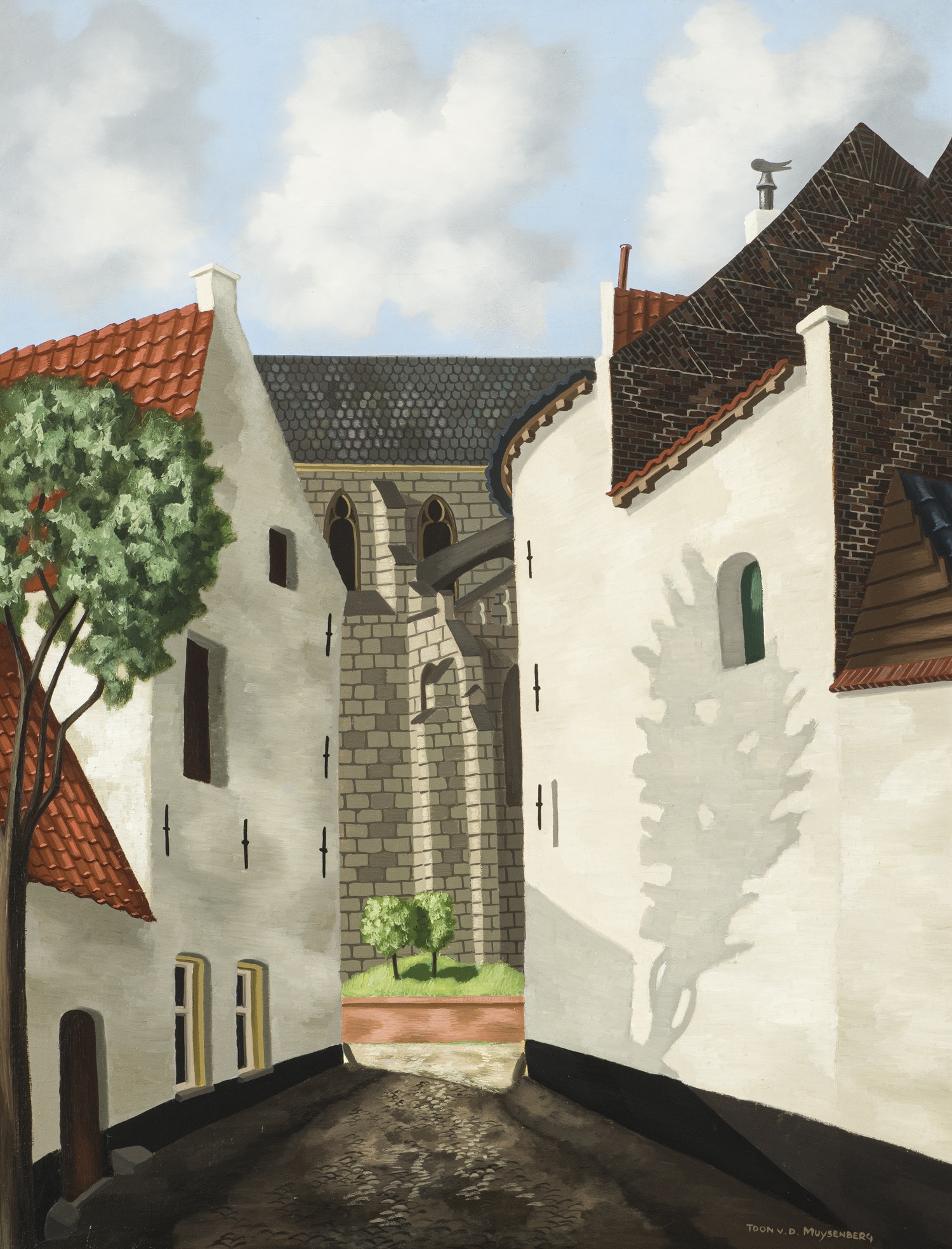 Toon van den Muysenberg was schilder, tekenaar en graficus. Zijn onderwerpen waren stadsgezichten, landschappen, stillevens en figuren. Vanaf 1930 exposeerde hij regelmatig bij 'De Onafhankelijken', vanaf 1938 bij 'De Brug'. Daarnaast nam hij deel aan de tentoonstelling 'Kunst op zolder' die in 1932 werd georganiseerd door een aantal kunstenaars (o.a. Chris Beekman, Willy Boers, Ger Gerrits en Henk Henriët) die zich niet wilden onderwerpen aan de jurering voor de Nationale Tentoonstelling van dat jaar en die kunst voor het volk propageerden. Later maakte hij deel uit van de groep 'De Populisten'. Hij werkte in een naturalistische stijl die de critici naïef vonden aandoen. Misschien bediende hij zich juist van deze stijl uit bewondering voor Henri Rousseau. Zijn werk wordt nu ook wel gerekend tot de Nieuwe Zakelijkheid en het Magisch Realisme. In 1967 overleed Muysenberg als gevolg van suikerziekte in een ziekenhuis in Barcelona.