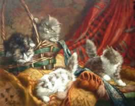 Cornelis Raaphorst werd geboren op 2 oktober 1875 en overleed op 24 januari 1954 te Wassenaar. Cornelis Raaphorst schilderde bij voorkeur spelende jonge poesjes in al hun doen en laten. Hij schilderde min of meer in de stijl van Henriette Ronner, ofschoon hij toch weer een heel eigen stijl van schilderen toepaste.
