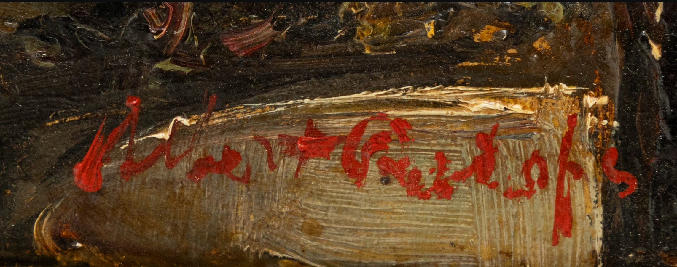 Albert (Roelofs, Otto Willem Albertus) Roelofs werd in Schaarbeek (Brussel) geboren en overleed in Den Haag. Albert Roelofs was de zoon van de beroemde schilder Willem Roelofs (Amsterdam, 10 maart 1822 - Berchem, 12 mei 1897) en Lid van van Pulchri studio. Woonde en werkte in Brussel en Den Haag. De koningin (Wilhelmina en prinses Juliana) namen de tijd voor schilderlessen bij Albert Roelofs. Kenmerkend voor de schilder was zijn extravagante manier van kleden ( (Dandy) waarin hij samen met zijn vrouw Tjieke Bleckmann de de Haagse Pulchri Studio frequenteerde.