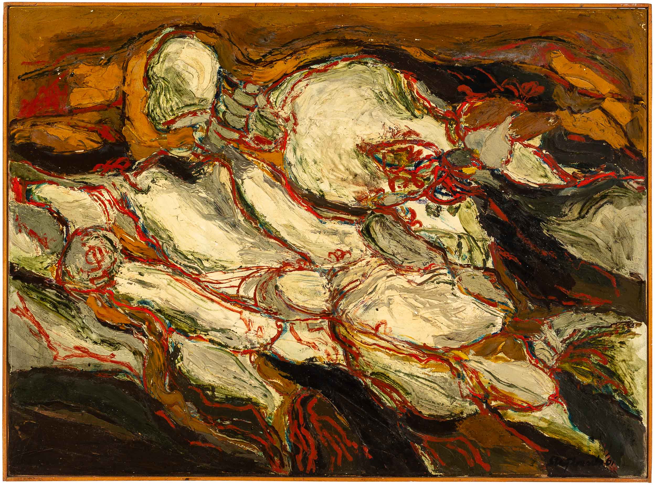 Wim Strijbosch en zijn lyrische expressie in grafiek en vrij werk Wim Strijbosch werd geboren op 2 december 1928 te Amsterdam. Op zijn 17e verliet hij het ouderlijk huis en betrok een pand aan de O.Z. Achterburgwal. In de moeilijke periode na de oorlog probeerde hij de kost te verdienen met het beschilderen van kralen en houten meubels. In 1947 begon hij een 2-jarige studie grafische vormgeving aan het Instituut voor Kunstnijverheidsonderwijs IvKNO, waar hij les kreeg van Mart Stam en Mark Kolthoff met wie hij goed bevriend raakte.Via andere bevriende kunstenaars Wagemaker en Rooskens werd hij in 1951 lid van de vereniging Creatie. Strijbosch, vanaf het begin aanhanger van de zuivere abstractie, paste goed binnen deze groep van kunstenaars die de zichtbare werkelijkheid als bron verwierpen. Hij wordt tot die kunstenaars gerekend die aan composities van lijn en kleur een emotionele betekenis toekennen en de verbondenheid met het kosmische weergeven, zoals te zien is in zijn werk uit de periode rond 1950. In zijn Composition d’un mouvement directe komt een poëtische expressie naar voren = die doet denken aan het werk van Paul Klee – waar op een zacht gekleurde ondergrond met pen en Oost-Indische inkt lijnen zijn aangebracht. De pennenstreken zijn overwegend verticaal geplaatst en worden overlapt door halfronde en horizontale lijnen. Ontstane halfopen en gesloten ruimten zijn met pasteltinten ingekleurd. Hoewel Klee’s invloed ook in zijn latere werk is aan te wijzen, onderzocht Strijbosch toch op eigen wijze van expressie de mogelijkheden van materiaal, vorm en kleur.