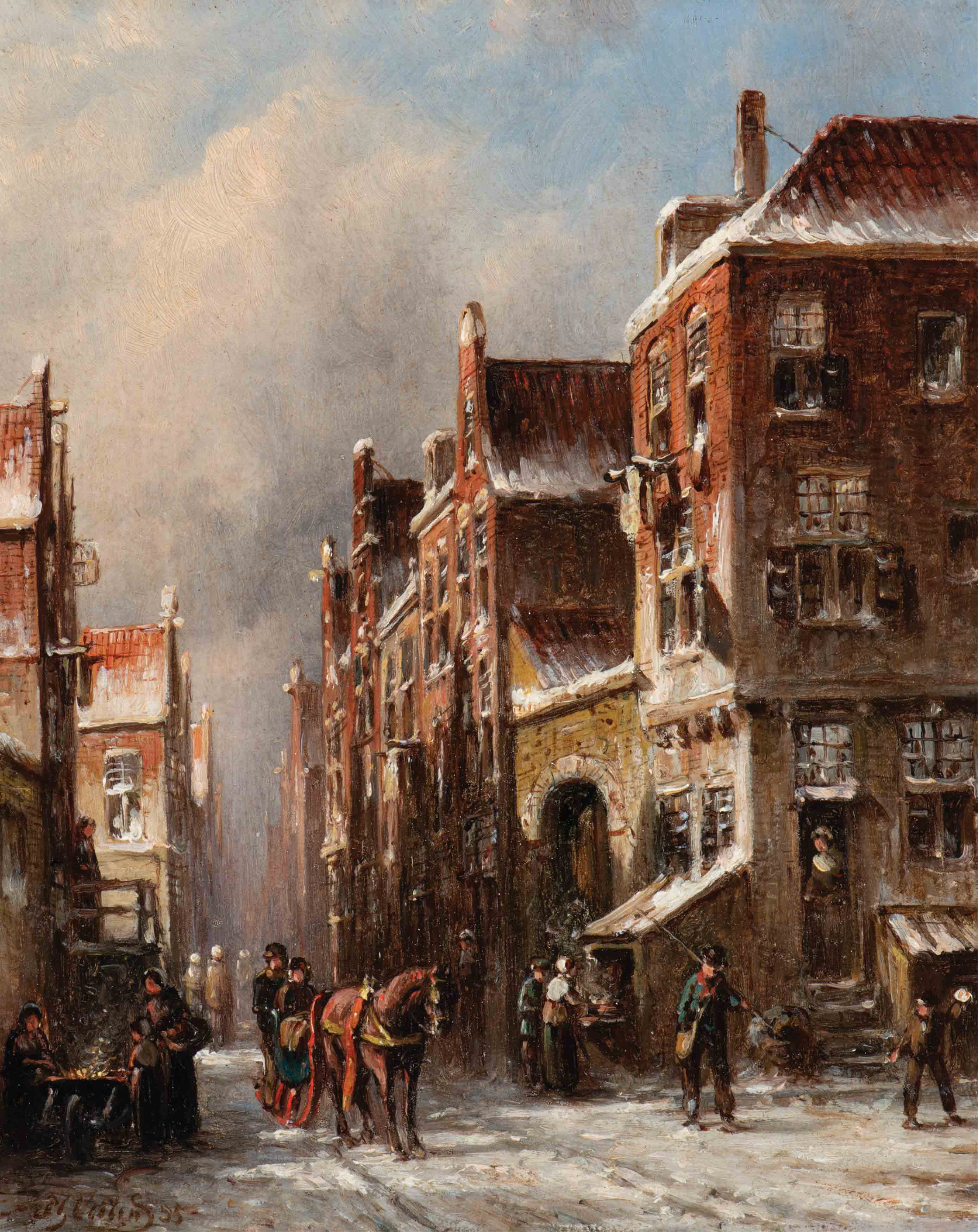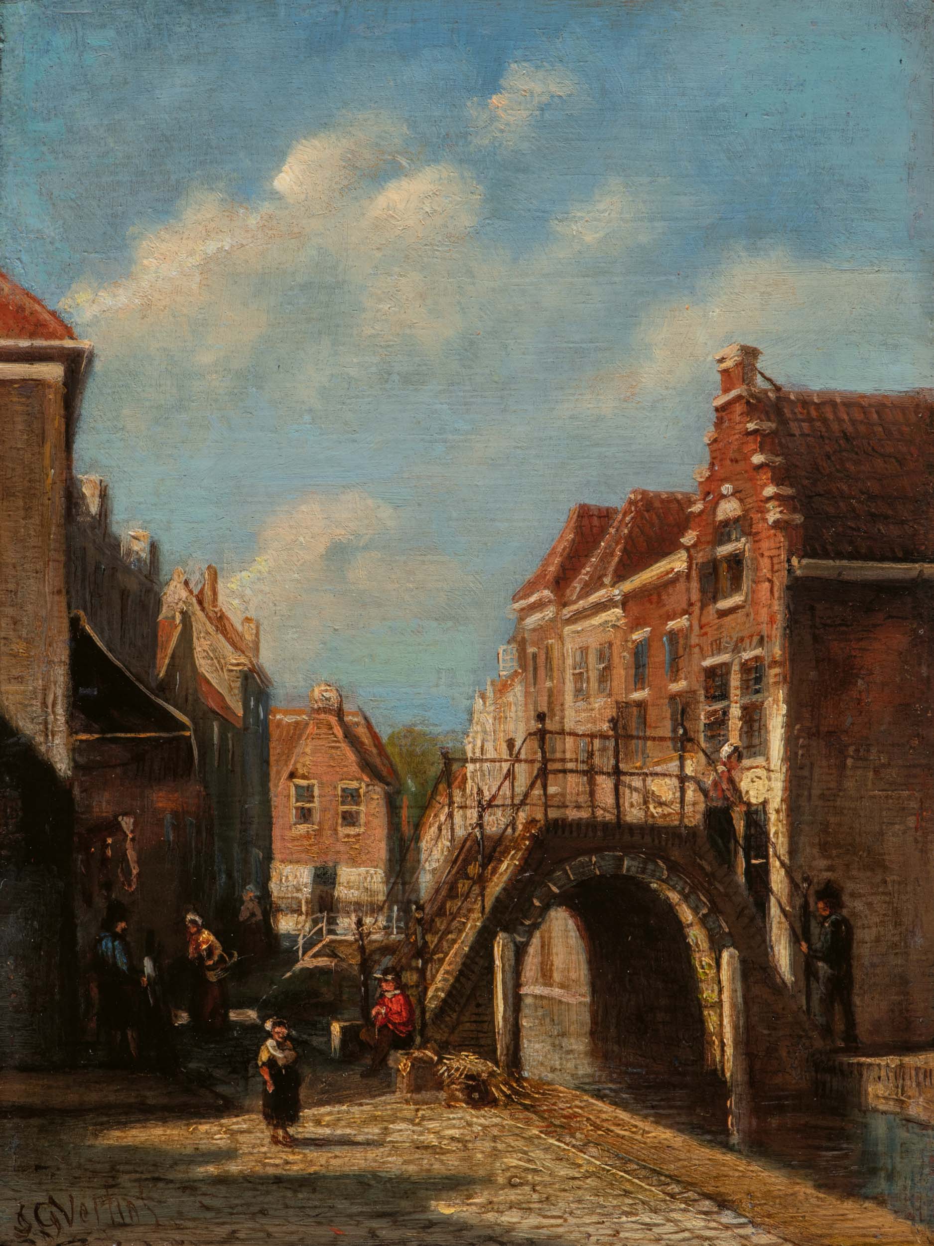 De kunstschilder Petrus Gerardus Vertin werd geboren in 1819 te Den Haag. Hij woonde en werkte gedurende zijn leven hoofdzakelijk in Den Haag. Vertin was leerling aan de Haagse Akademie voor Beeldende Kunsten. P.G. Vertin schilderde veelal stadsgezichten (straatjes), welke niet altijd topografisch waren. Zijn werk valt op door het bijzondere gebruik van lichteffecten. Vooral in zijn wintergezichten zijn de lichtweerkaatsingen op besneeuwde daken, kozijnen en stoepjes prachtig weergegeven.