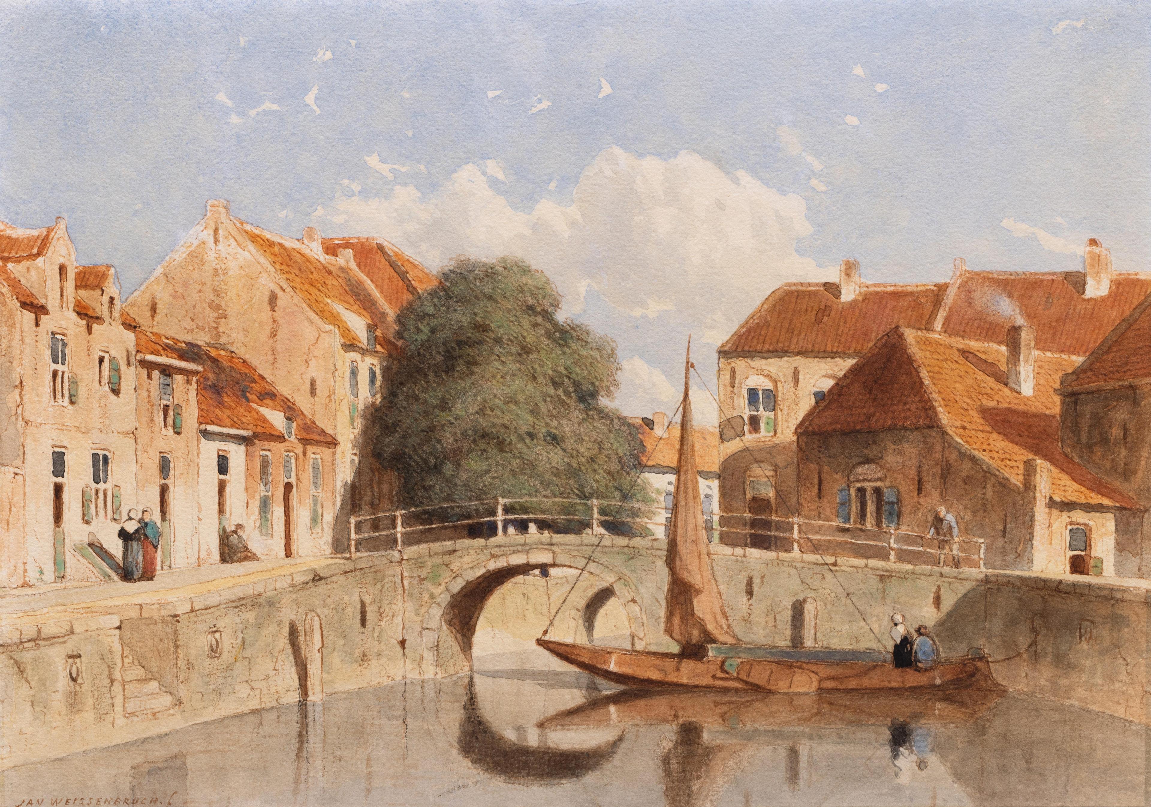 Jan Weissenbruch was vooral in Den Haag werkzaam, hoewel hij ook enige tijd verbleef in Leerdam, in Culemborg en in België, waar hij oa. Zicht op de St.Denis-kerk te Luik presteerde. Zijn voorkeur ging trouwens naar zeer minutieus geschilderde stadszichten, met bruggetjes en kanalen en vaak met scherp invallend zonnelicht. In zijn grafisch werk benaderde hij echter een nog ruimere vrijheid, wat zijn faam ten goede kwam.